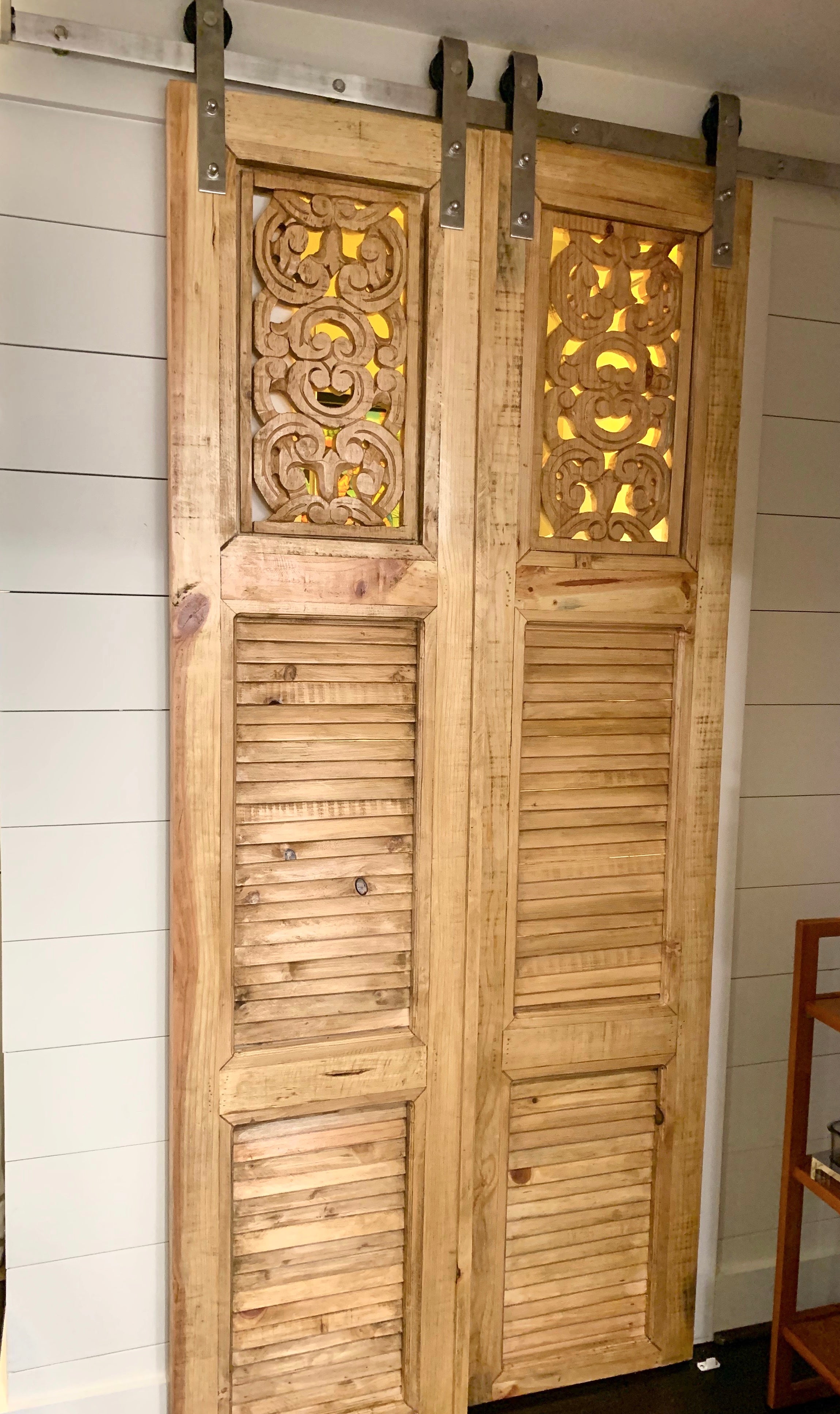 Añade un aire de encanto campestre y sofisticación a tu hogar con nuestra Puerta de Establo Tallada.