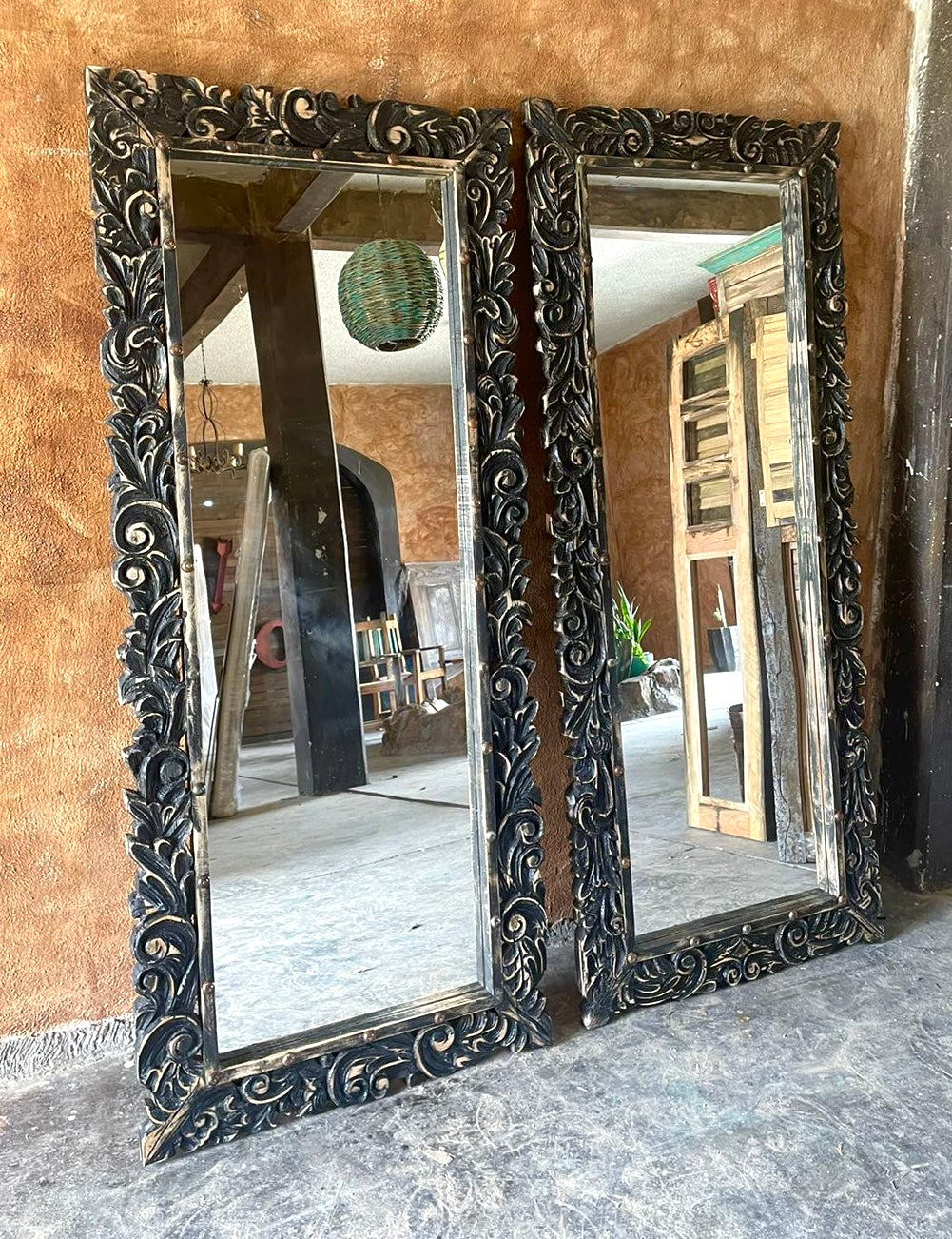 Marco tallado a mano con espejo